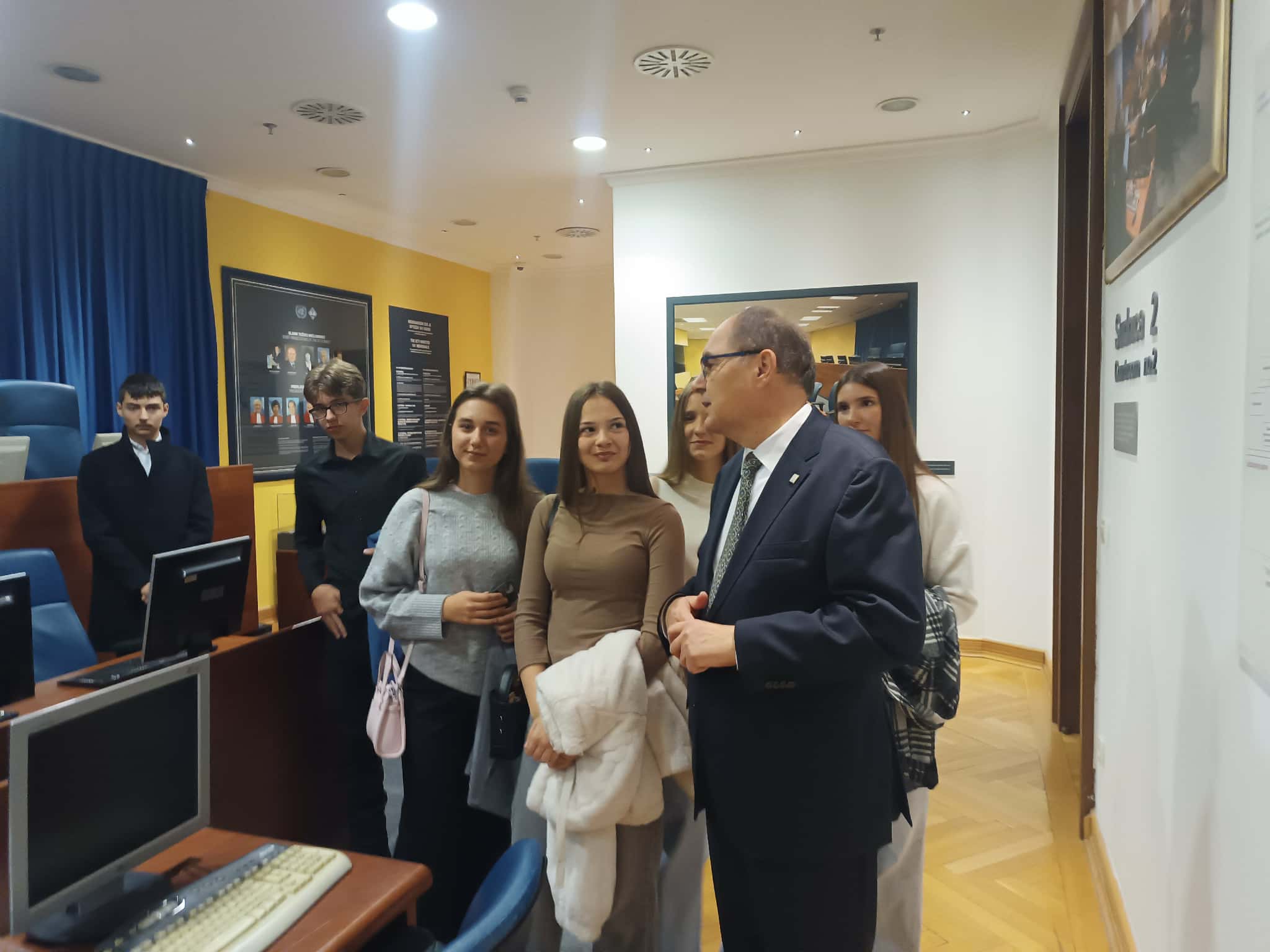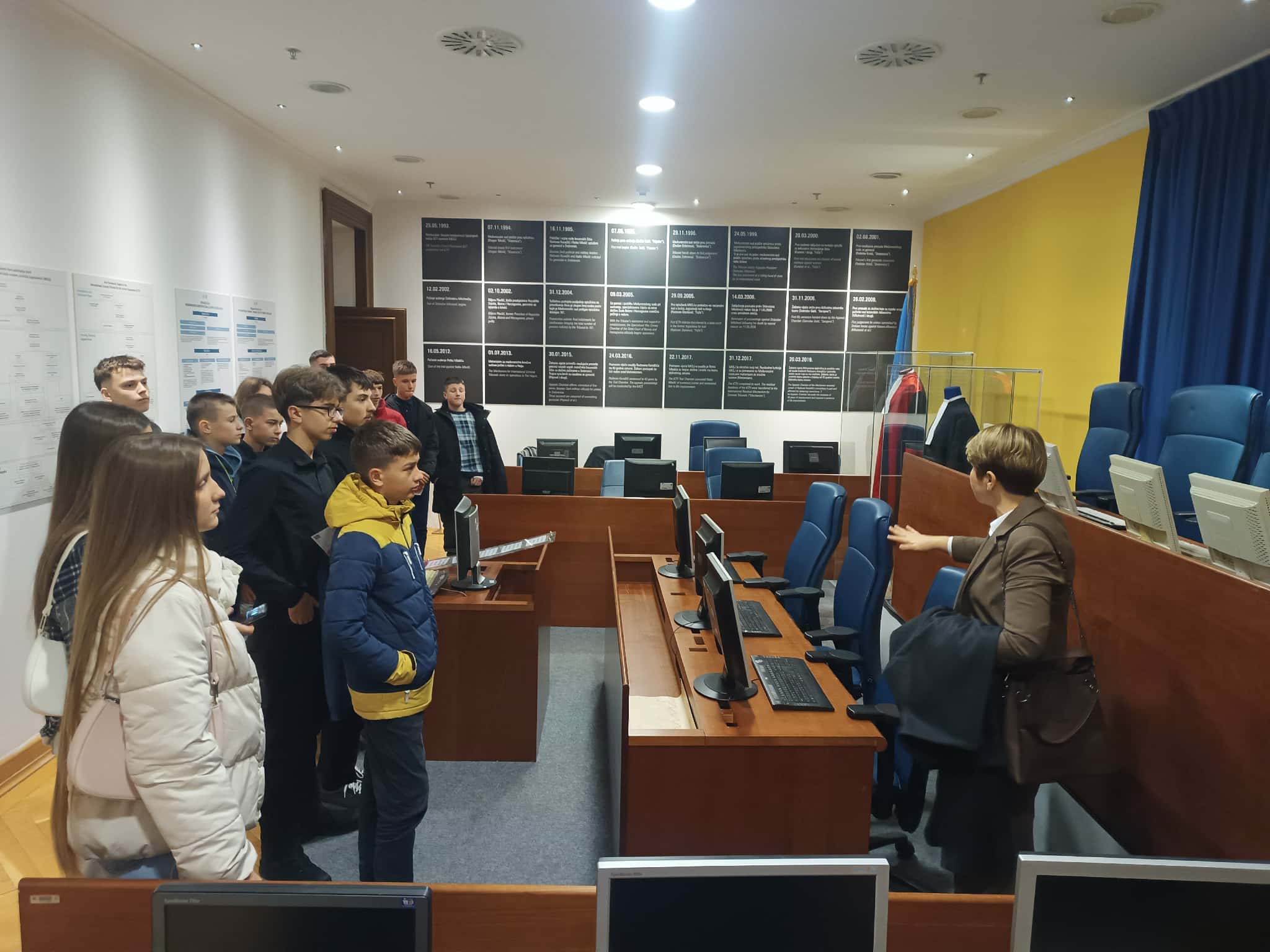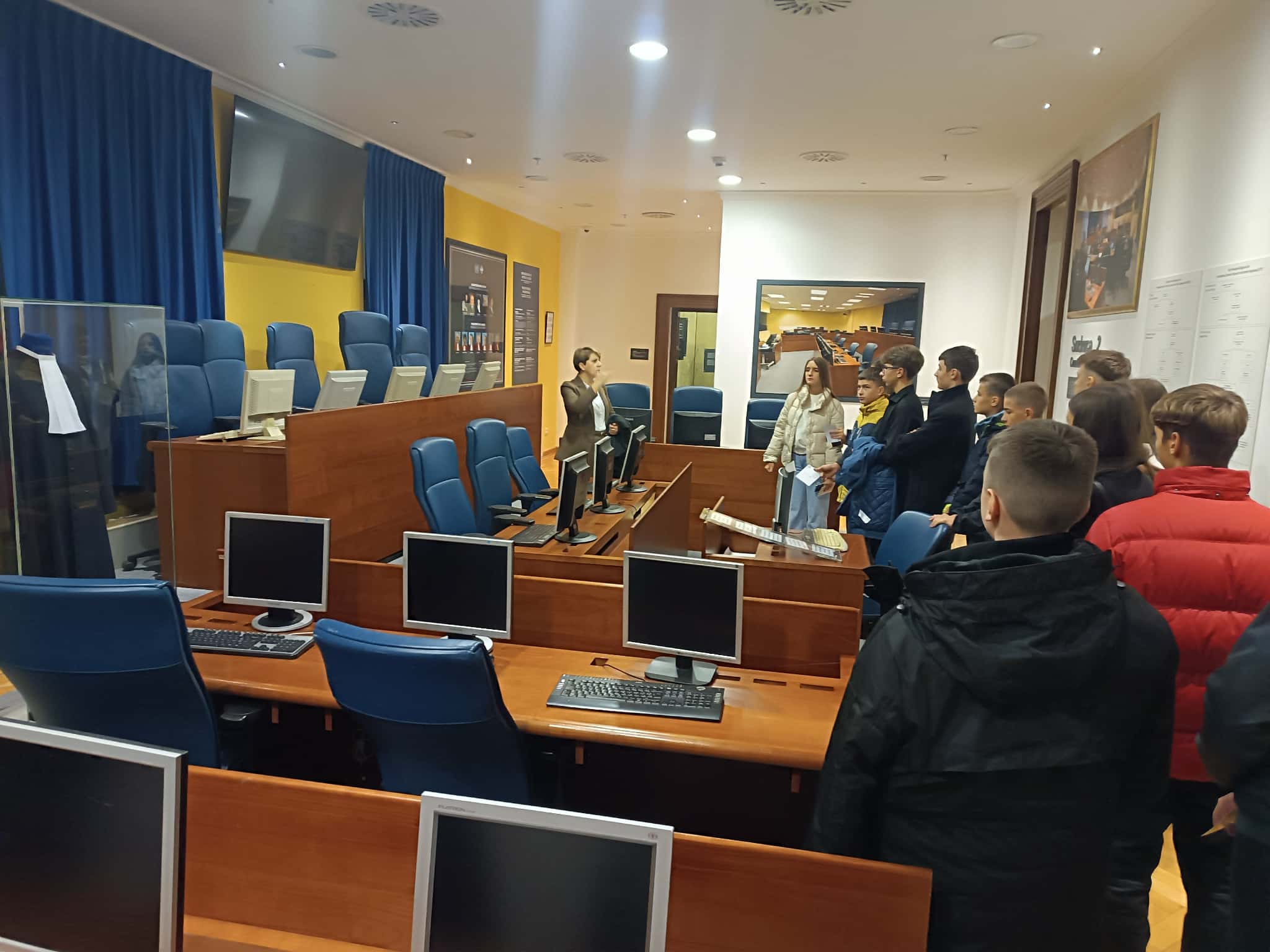 U okviru ove posjete, učenici su obišli stalnu postavku: simulacija sudnice Haškog tribunala, gdje su se upoznali sa razlozima osnivanja tog suda i njegovim načinom funkcioniranja.