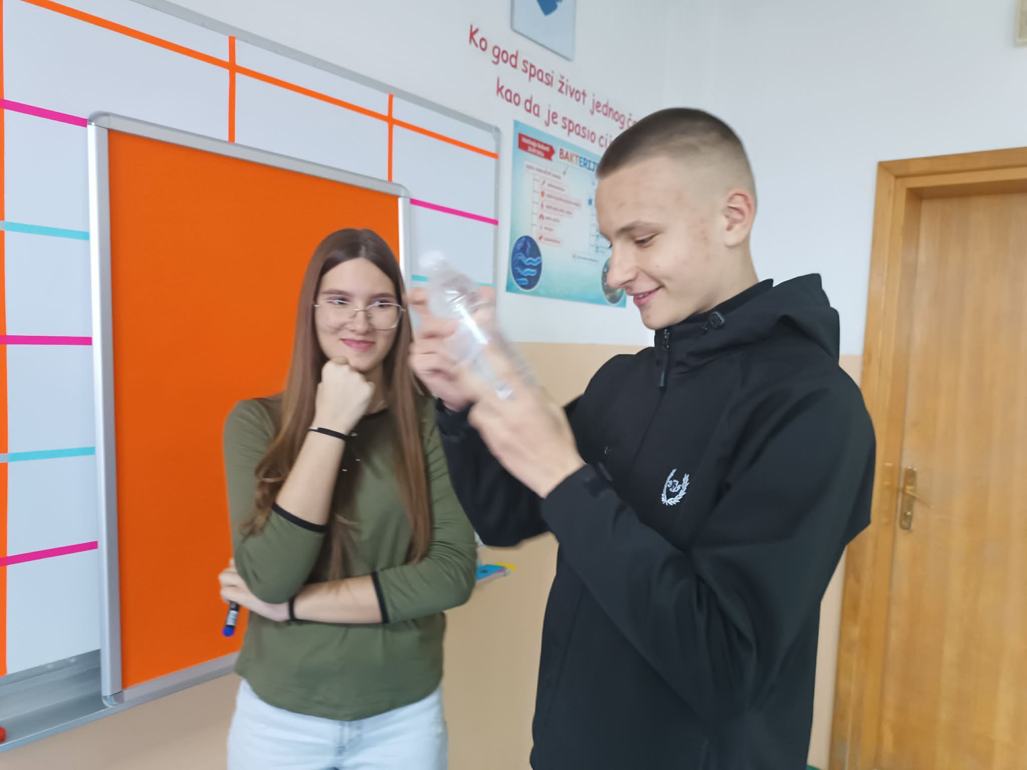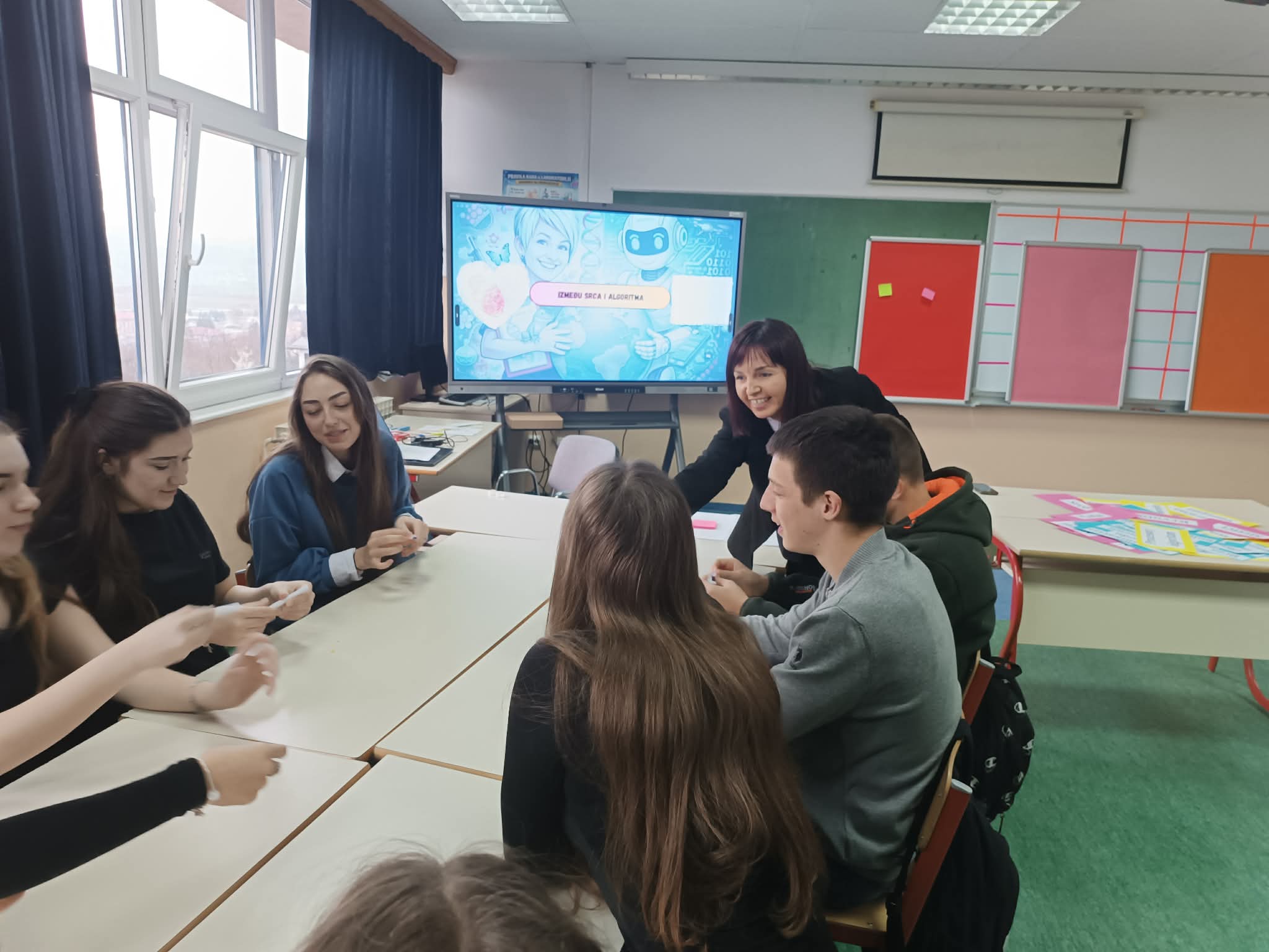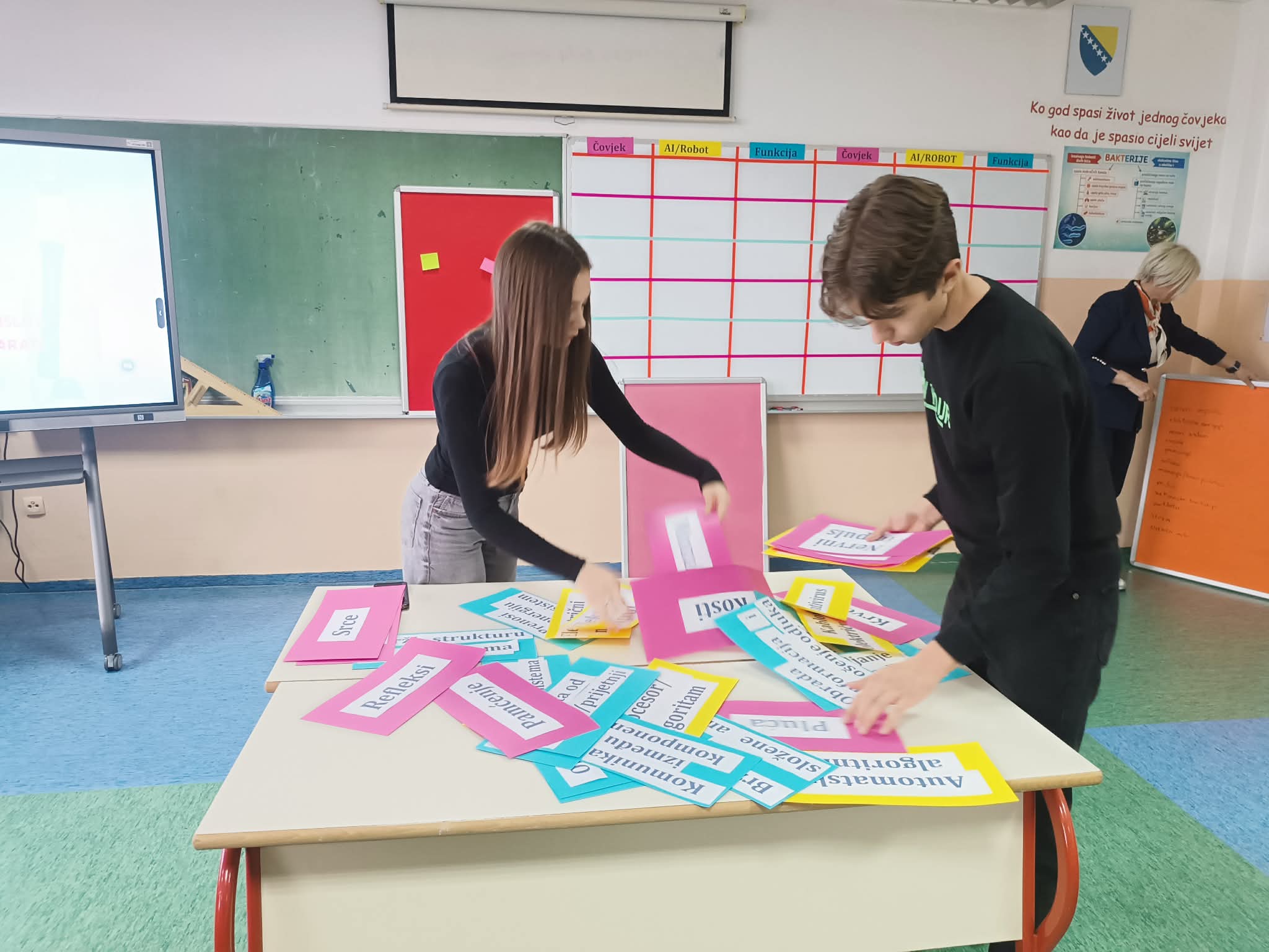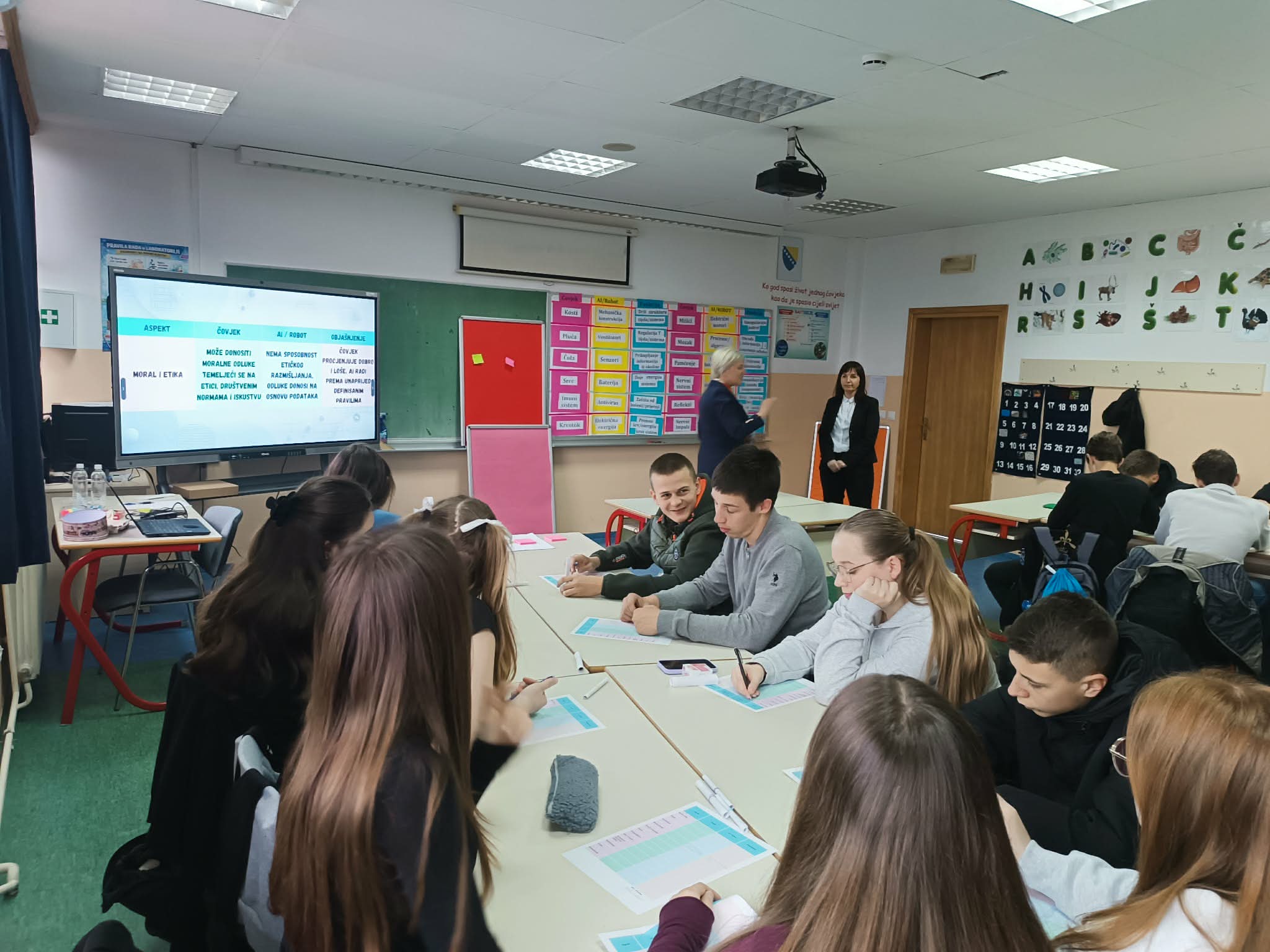 Direktorica škole Lejla Podbićanin i pomoćnica direktorice Armina Bukvić realizovale su ogledni čas sa učenicima IX razreda. Biologiju i tehničku kulturu spojili su kroz temu “Između srca i algoritma”