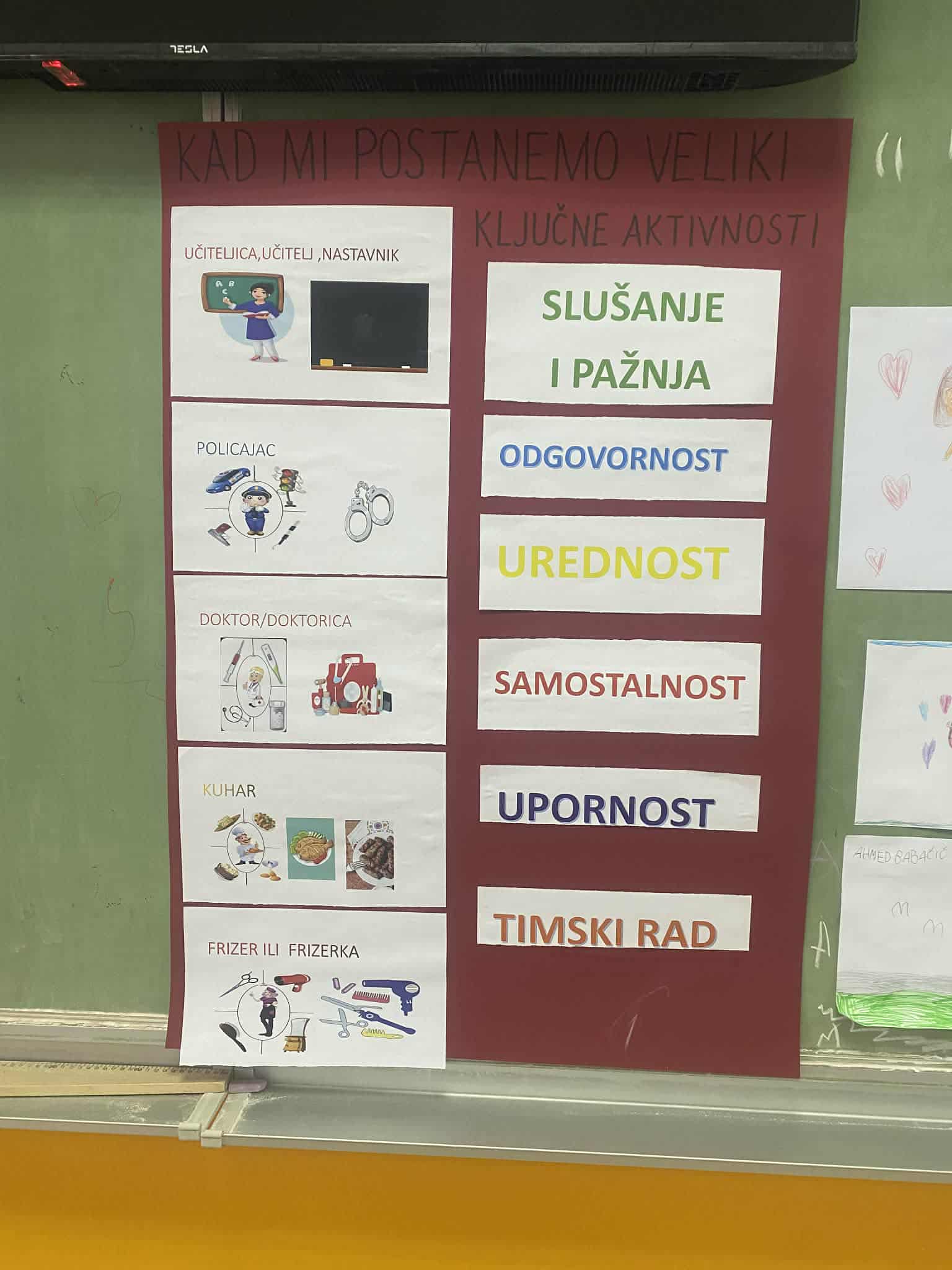 Učenici su aktivno učestvovali u svim aktivnostima i povezali zanimanja ljudi sa potrebnim vještinama i navikama.