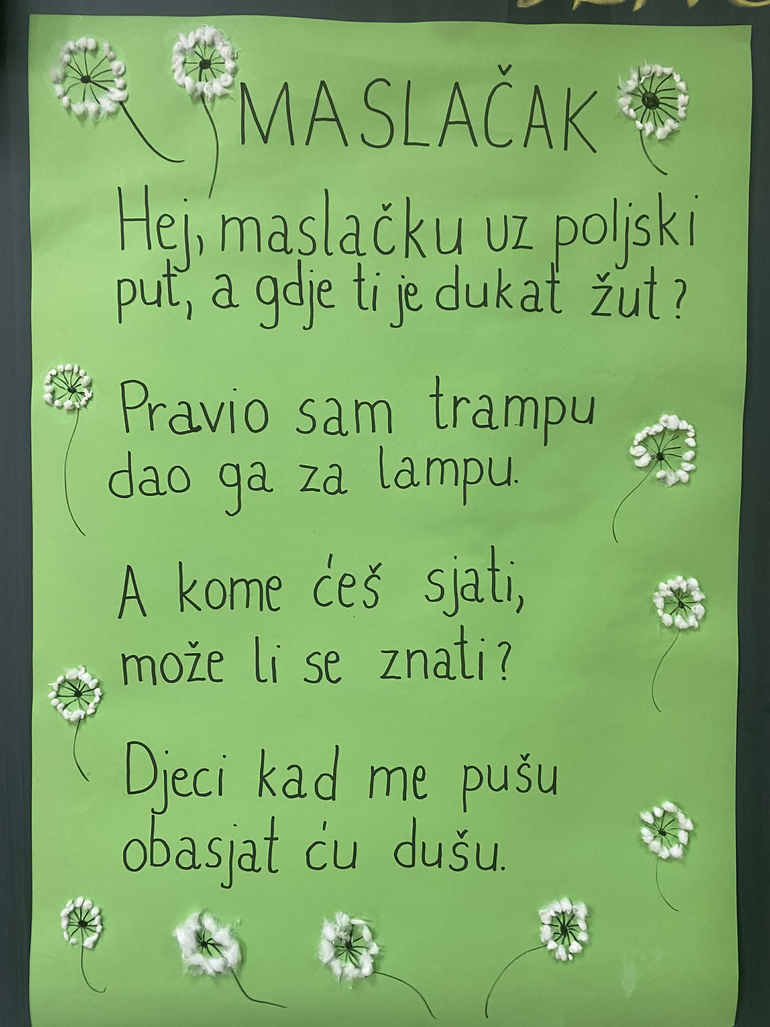 Kroz boravak u prirodi, razgovor i kreativne aktivnosti, učenici su istraživali ljepotu proljetne prirode i učili o biljkama koje nas okružuju. Učenici su proveli divan dan u prirodi, obilježavajući na poseban način Dan maslačka.